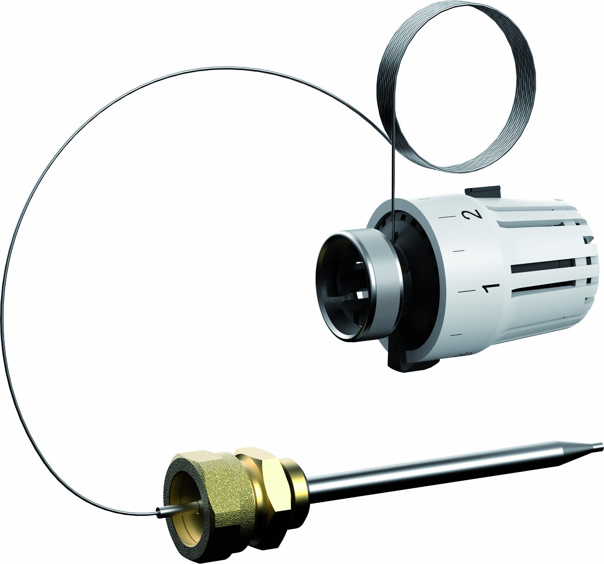 Thermostatkopf mit Tauchfühler, zur Montage mit PAW Einspritzschaltungen für Fußbodenverteiler, Konstant-Temperatur-Regelung 10 °C – 40 °C ohne Hilfsenergie
