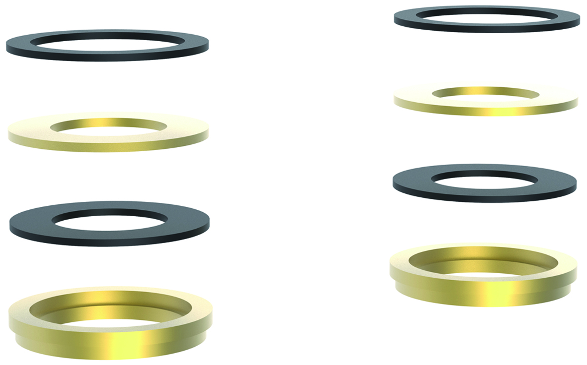 Satz Einlegringe für Überwurfmutter 2" IG auf 1" PAW-Flansch, aus Messing, mit speziellen Dichtungen, flachdichtend