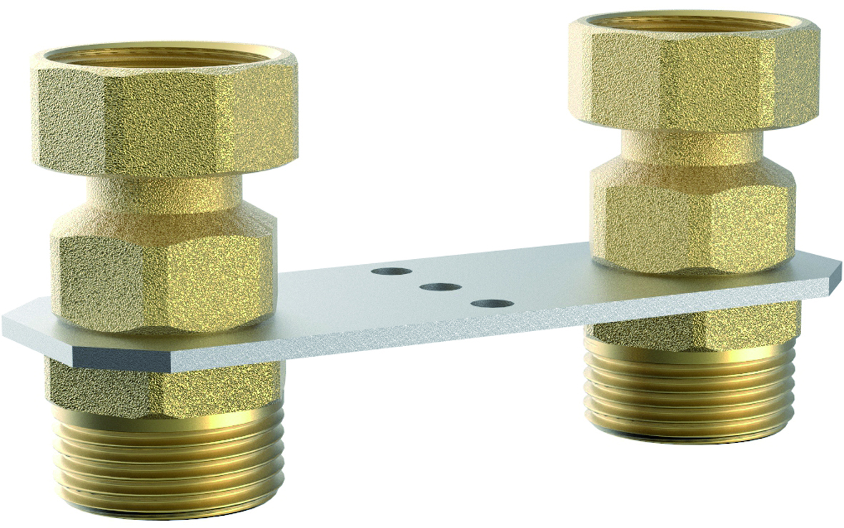 Bestandteile: Halteplatte, 2 Dichtungen, 2 x 1" Mutter, 2 x Reduziernippel 1" AG x ¾" AG