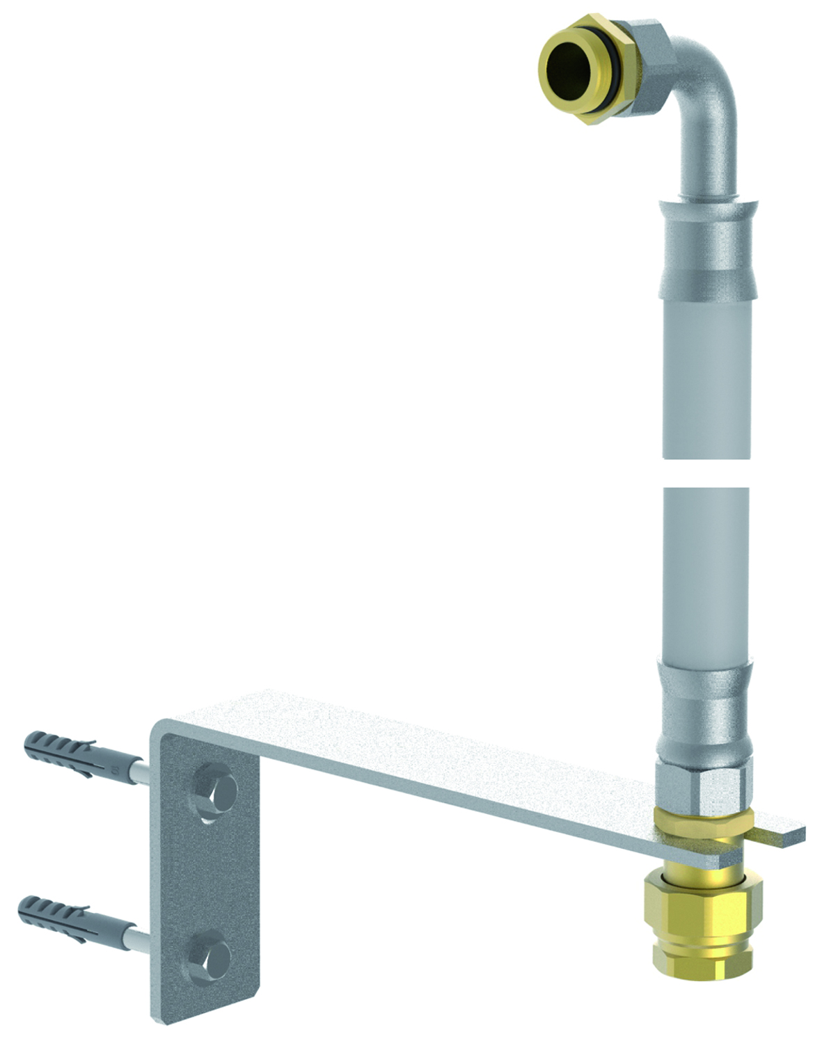 mit selbstdichtendem Doppelnippel ¾" und Befestigungsmaterial, Gefäßanschlusskupplung ¾", Panzerschlauch mit Bogen ¾" x 700 mm, maximaler Gefäßdurchmesser = 440 mm