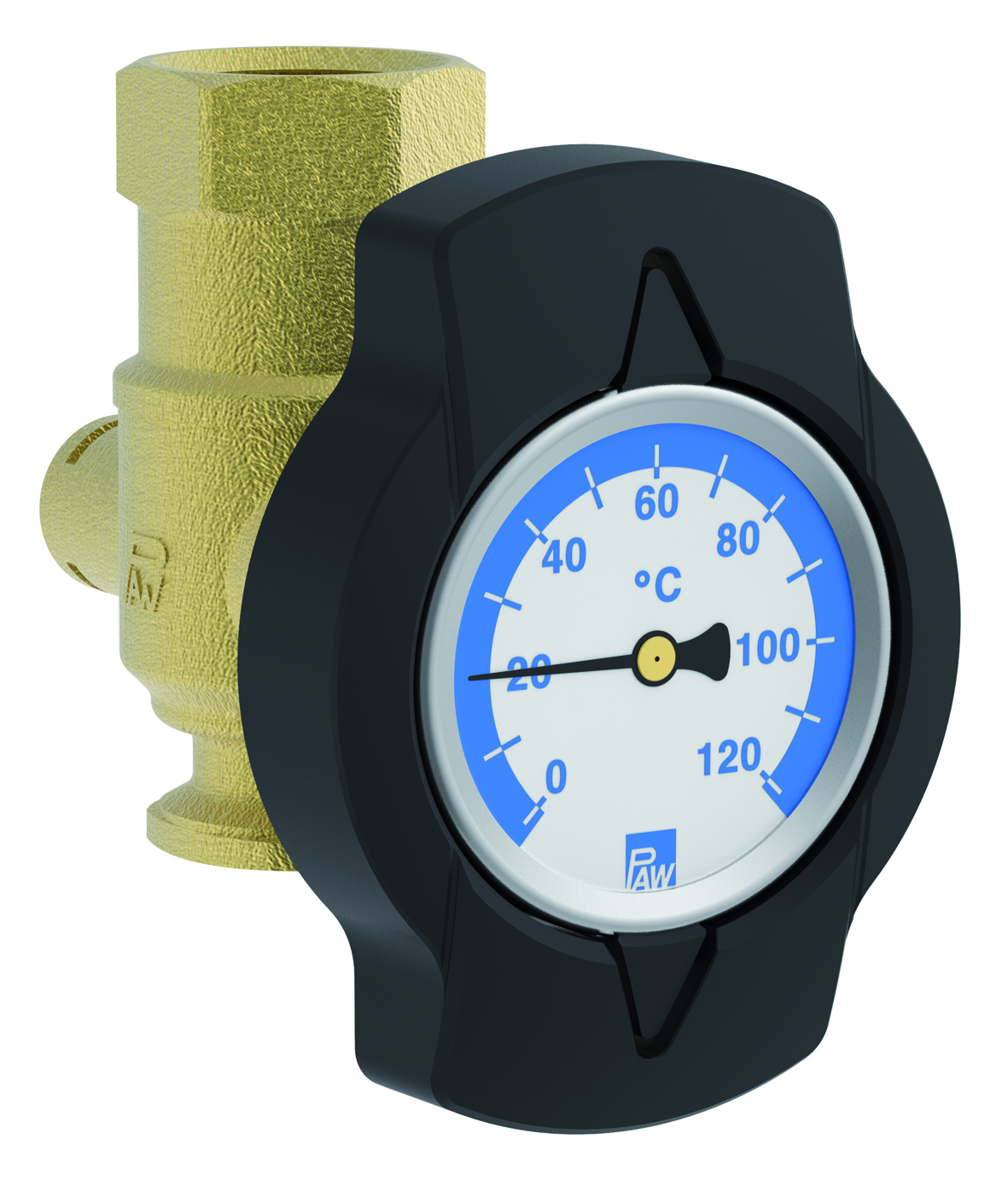 Zeigerthermometer mit blauer Skala im Griff, Griff mit Thermometer abziehbar