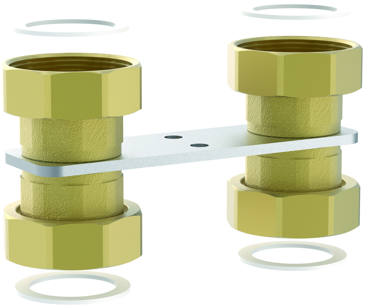Kupplungsstück für Überkopfmontage zur flachdichtenden Montage eines HeatBloC®s unter einem Verteiler.