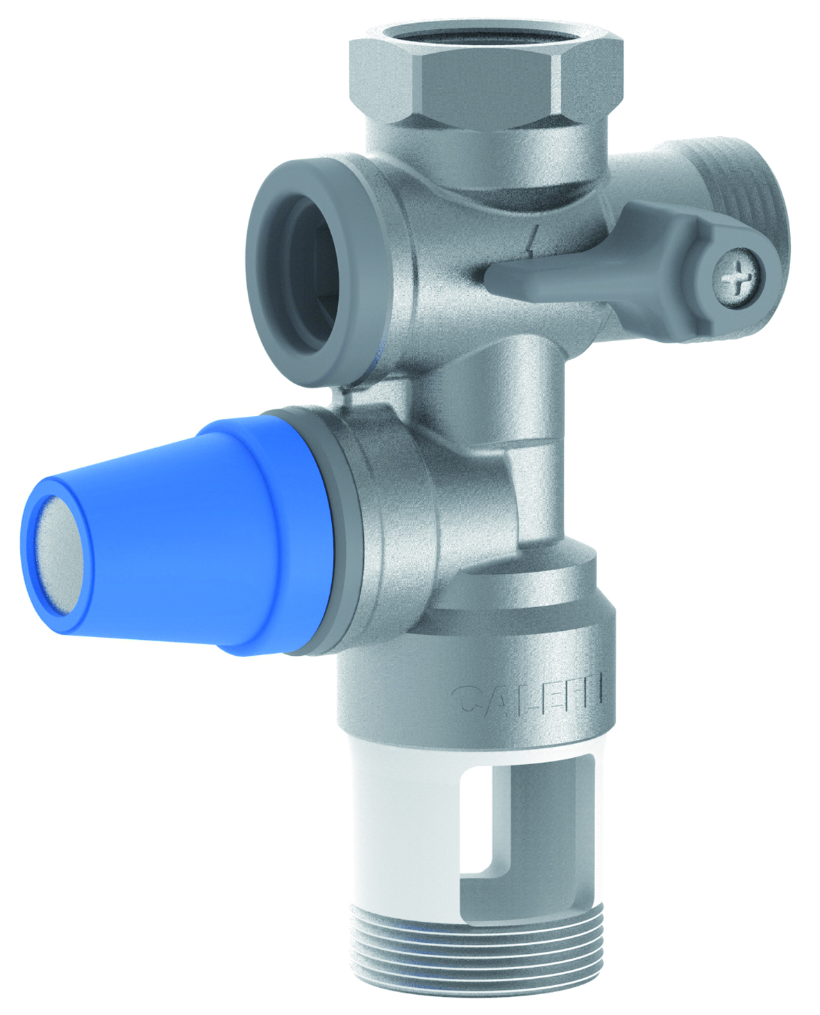 Sicherheitsgruppe für Warmwasser-Speicher, mit Absperrung und kontrollierbarem Rückschlagventil.