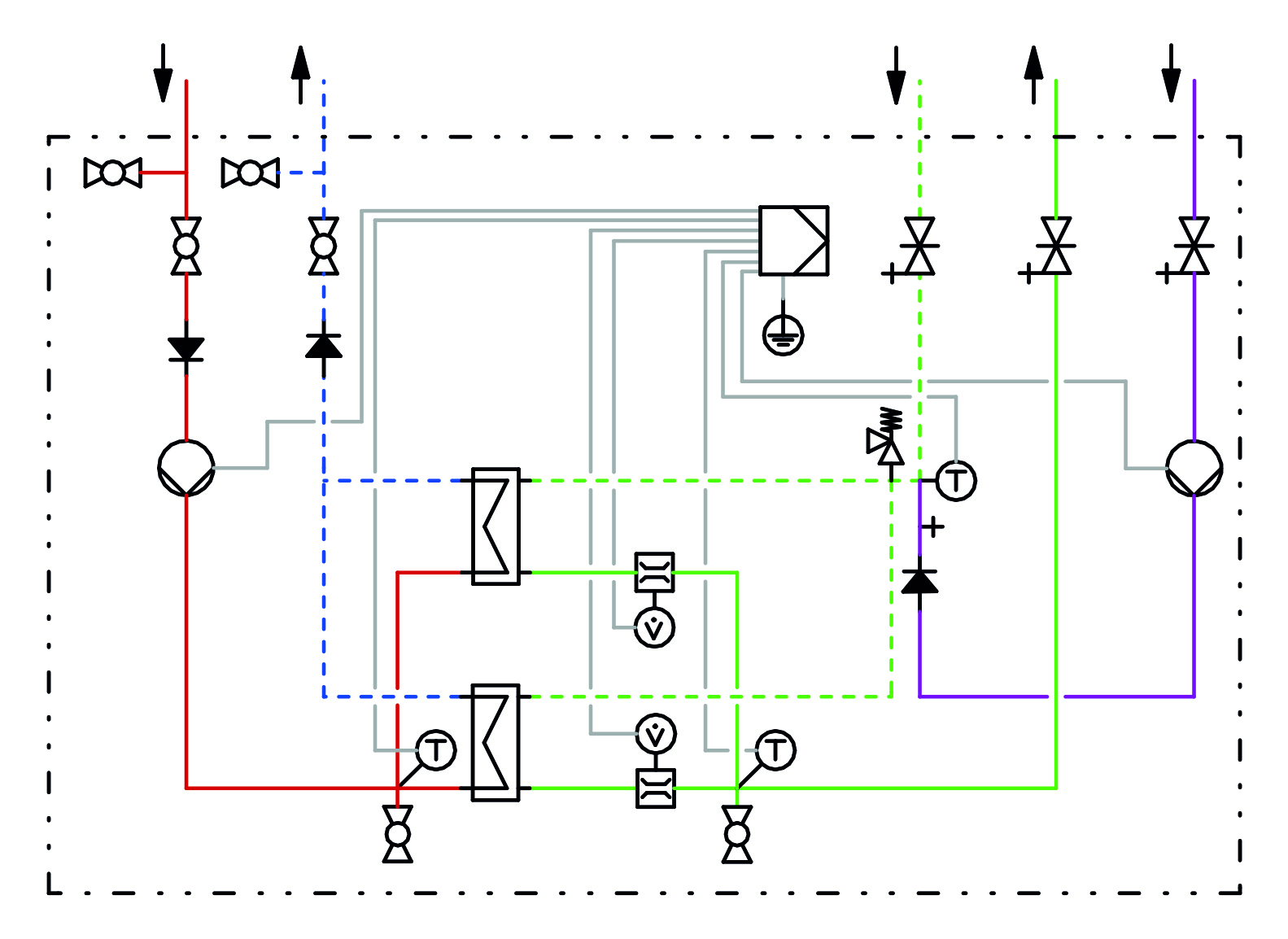 Capteurs: primär: 1x Pt1000 / sekundär: 2x Pt1000 / 2x Durchflussmesser