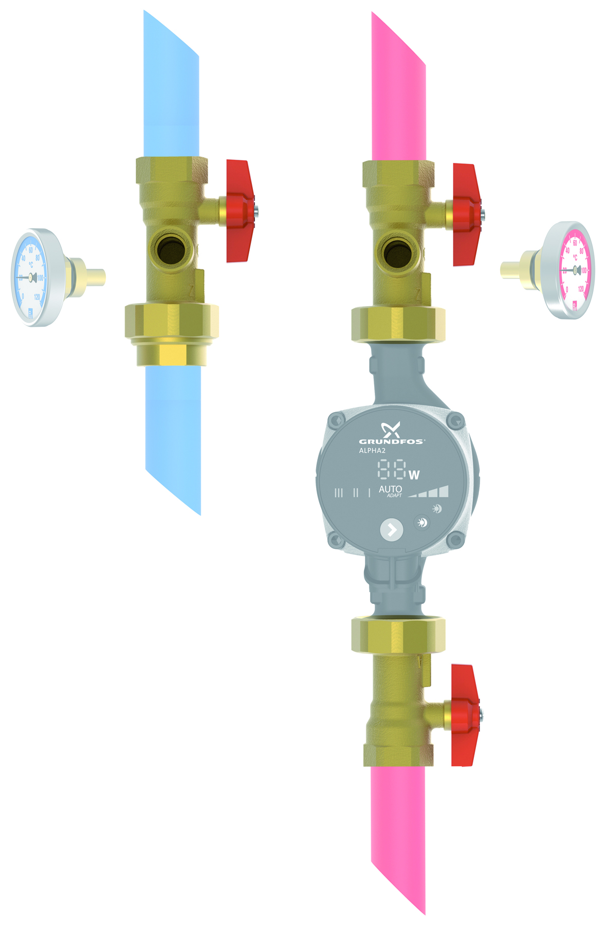 - PAW-Multikugelhahn mit rotem Flügelgriff
