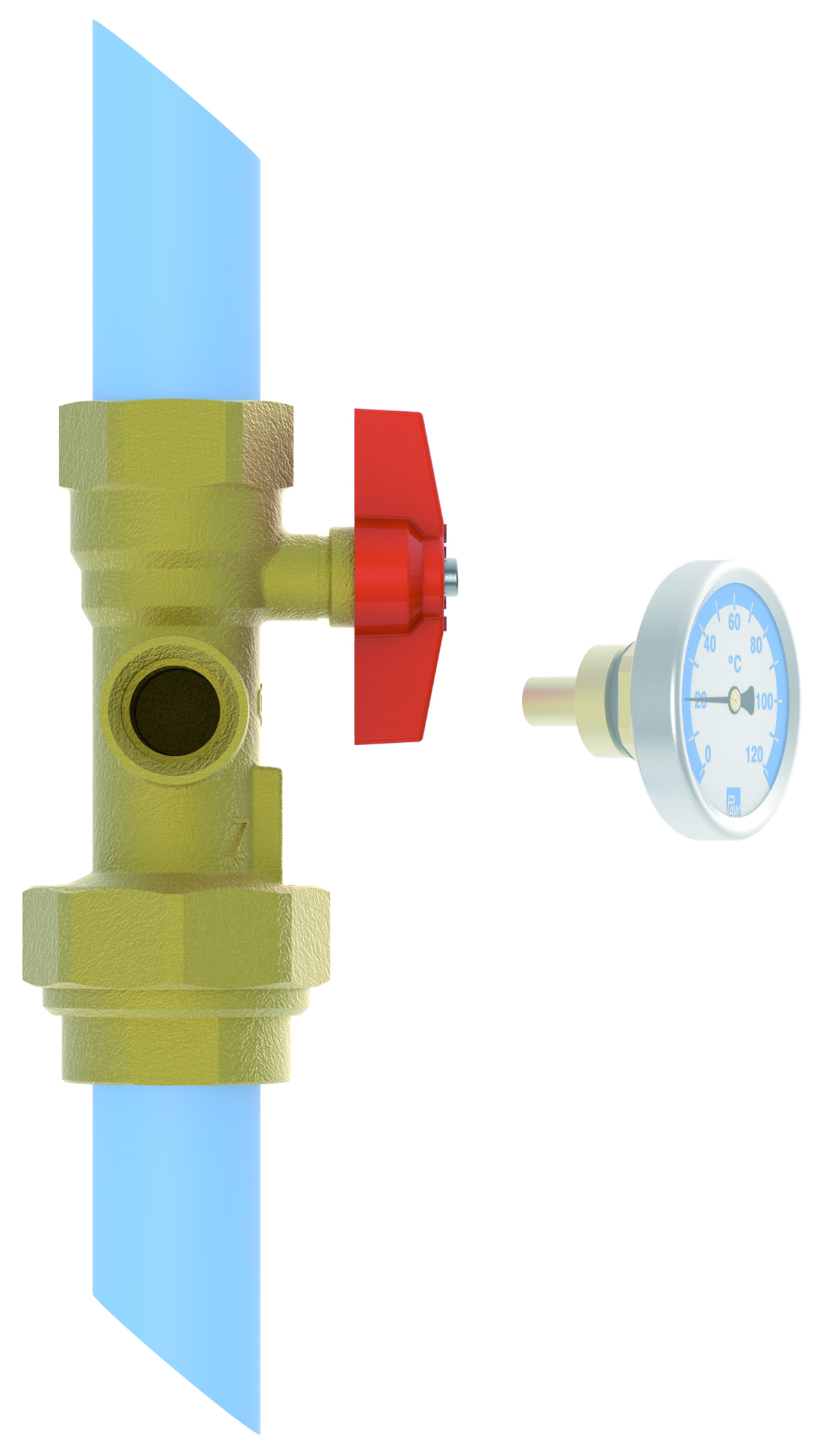 PAW-Multihahn mit rotem Flügelgriff, Verschraubung (ohne Zeigerthermometer)
