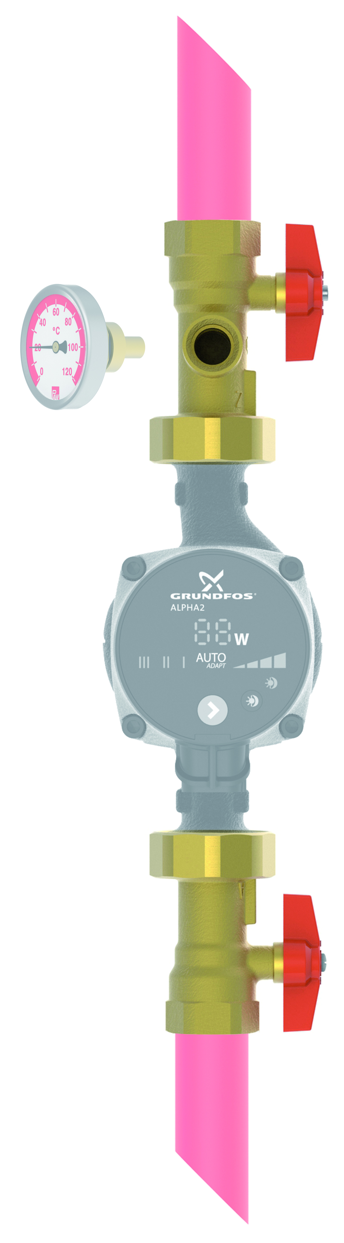 - mit 2 Muttern und 2 Dichtungen für eine Pumpe DN 25 (ohne Pumpe, ohne Zeigerthermometer)