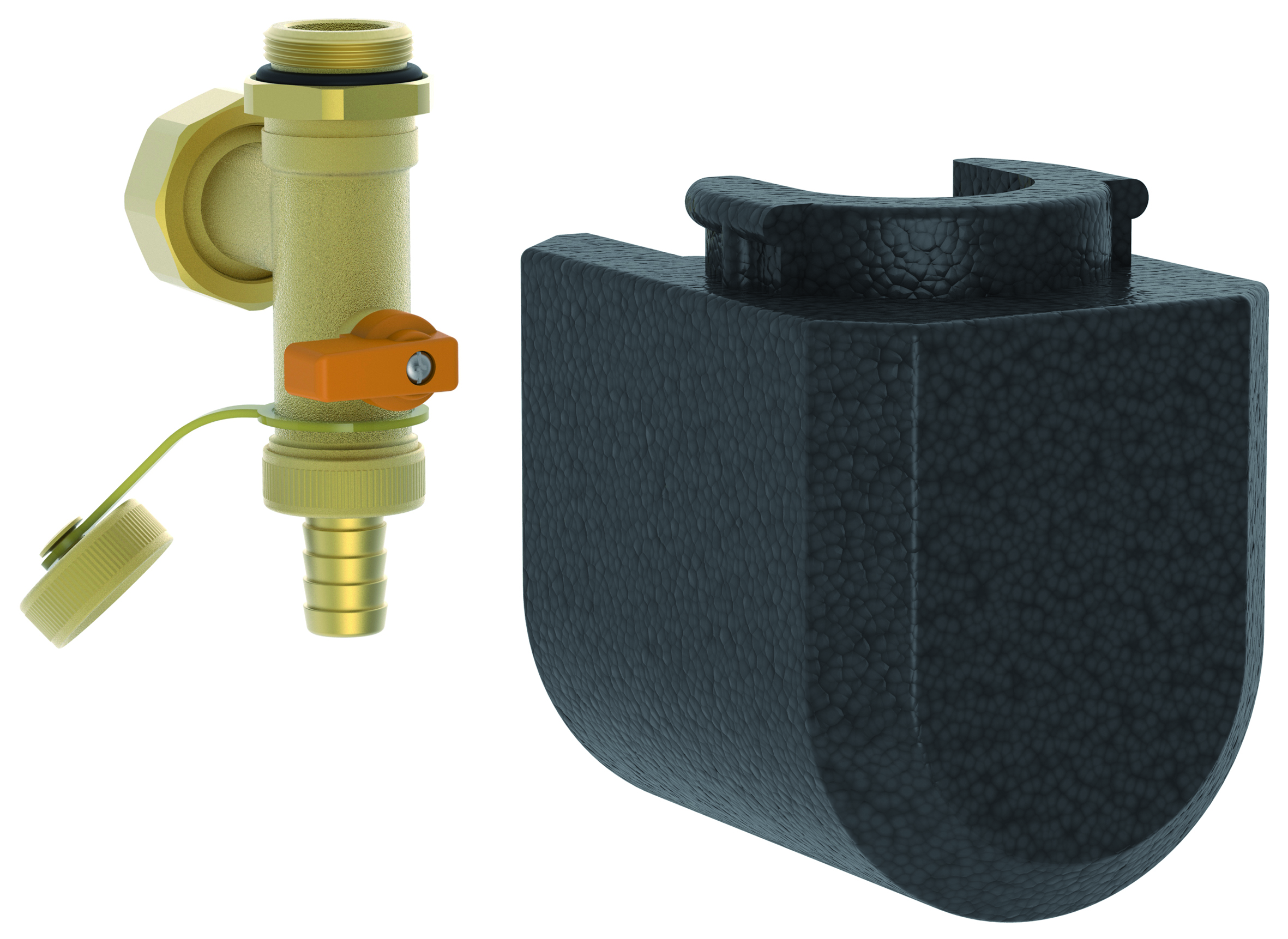 Flanschwinkel aus Messing mit KFE-Hahn und Isolierung