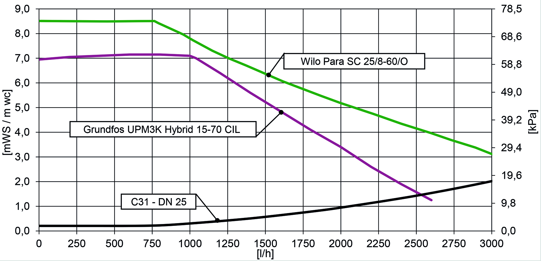 Empfohlener Einsatzbereich: bis 46,5 kW; 20 K bis 2000 l/h