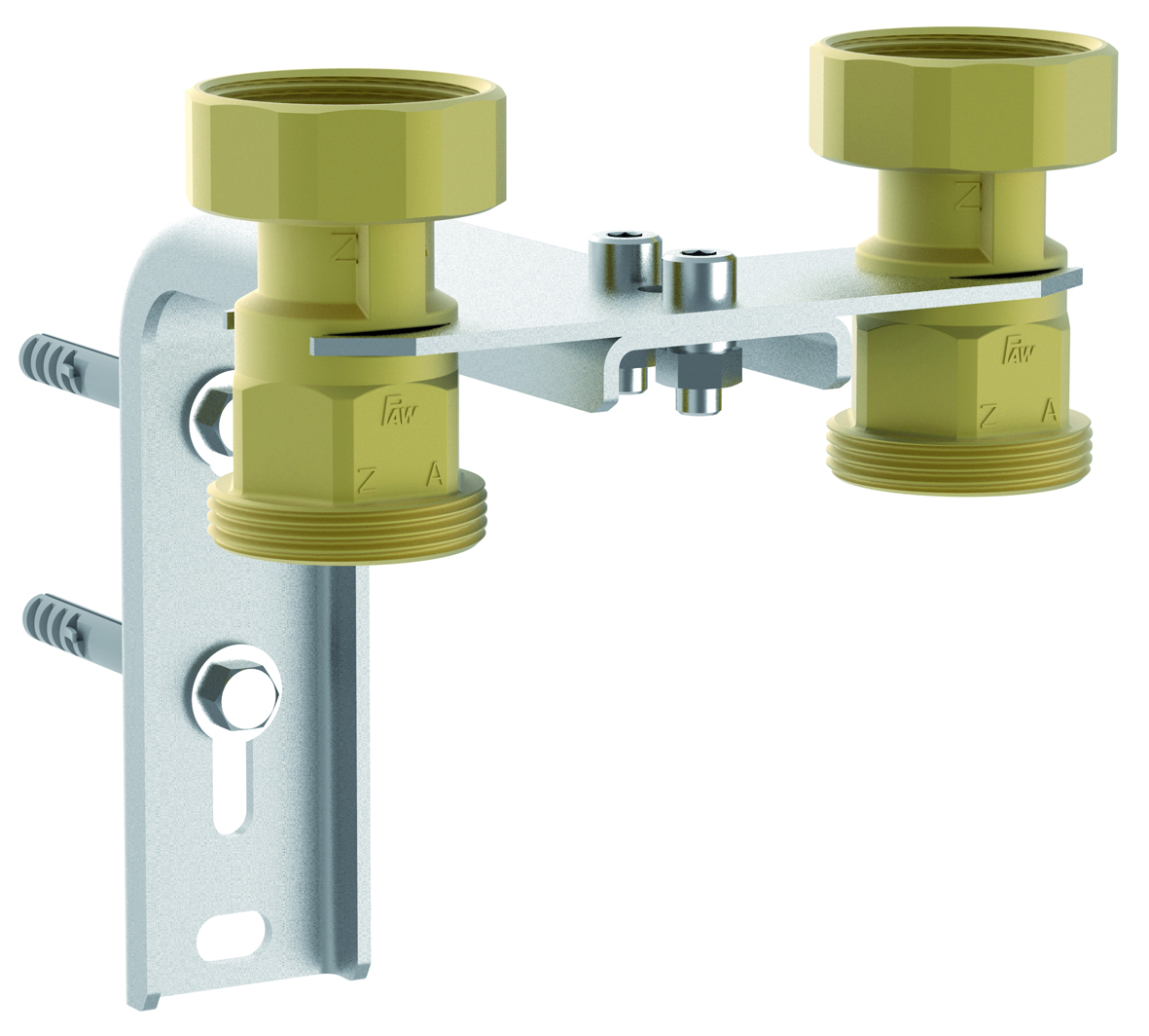 Bestandteile: 2 x 1½" Mutter (DN 25) /2 x 2" Mutter (DN 32) , Halteplatte, Wandhalter